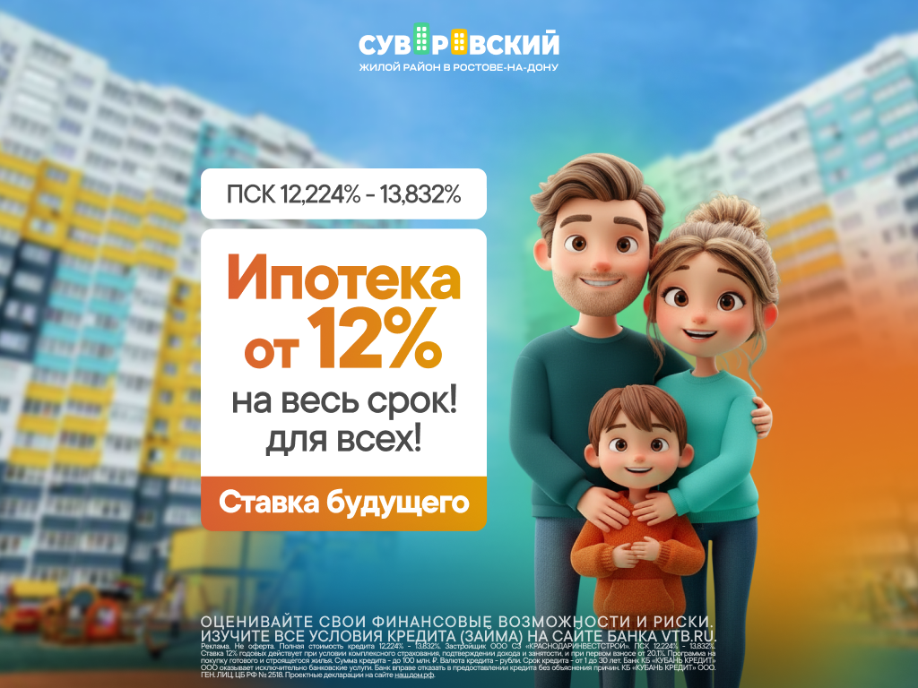 Не успели оформить ипотеку с господдержкой или не попадаете под условия семейной ипотеки? Не беда! Вместе с нашим банком-партнером мы запустили беспрецедентную программу «Ипотека 12%» выгода очевидна!