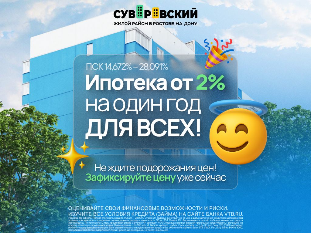 До 31 марта действует «Ипотека 2% на год для ВСЕХ»
