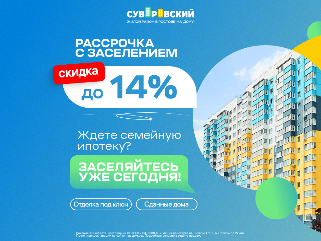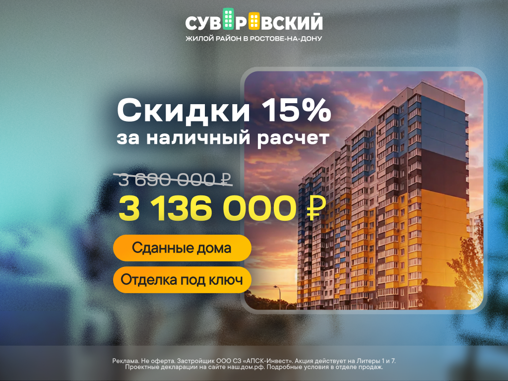 Скидка 15% на покупку новой квартиры в Жилом районе «Суворовский».